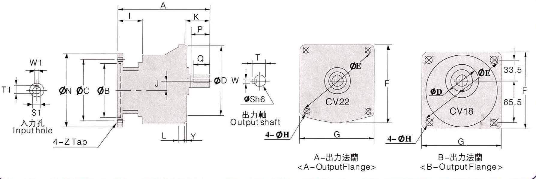 | 馬 力 | 減 速 比 | A | D | E | F | G | H | L | J | K | Y | B | C | N | Z | I | P | Q | S | T | W | S1 | T1 | W1 | 重 量 | PDF下載 | 三維下載 |